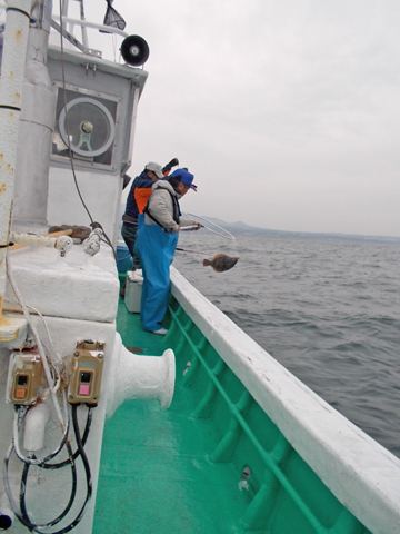上がってきたのは45cm弱のヒラメ。