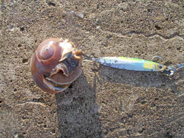 ツブ?巻貝。メタルジグがガッツリ刺さって