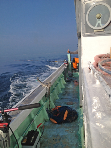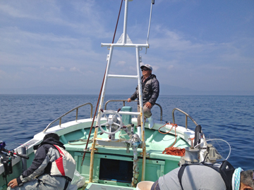 朝晩は涼しいですが、海の上での日差しは”夏”!管理人@クロフネ・・・帽子を忘れ