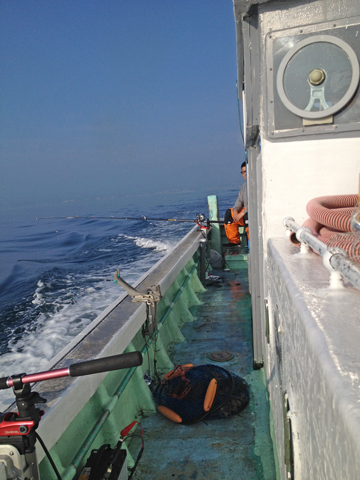 朝晩は涼しいですが、海の上での日差しは”夏”!管理人@クロフネ・・・帽子を忘れ